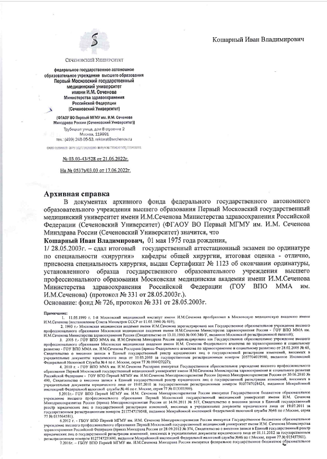 - Ординатура по специальности "Общая хирургия", Ставропольская государственная медицинская академия (2001 г.)