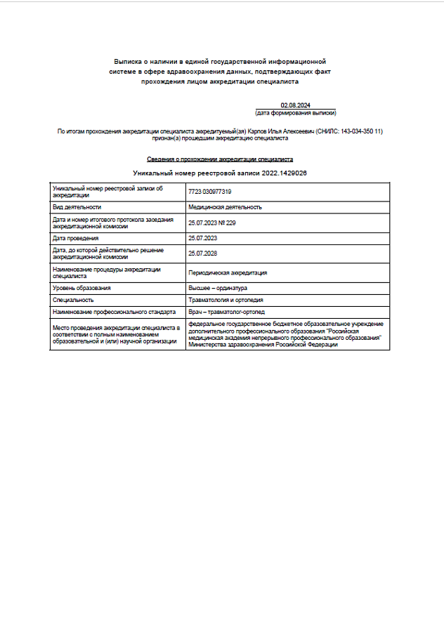 - "Травматология и ортопедия", Российская медицинская академия непрерывного профессионального образования (2023 г.)
